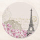 Paris France Travel Design with Eiffel Pink Roses Round Paper Coaster
