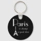 A keychain featuring the saying "Paris is always a good idea" with a picture of the Eiffel tower. It's on a black background but you can change that to any colour you like!