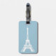 A custom luggage tag featuring the saying "Paris is always a good idea" and on the other side it has a picture of the eiffel tower!