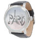 The perfect timepiece for the lover of the "city of lights." Paris written in a logo style with the Eiffel Tower as the A on a soft background of the French flag colours: blue, white and red. Tell time in the Parisian way.