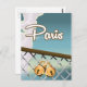 Paris love padlocks vintage travel poster. Cartoon Paris france love bridge.