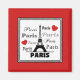 Paris text design illustration with Eiffel Tower and red hearts decoration in black and white squares on red background