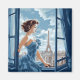 This magnet is shown with a lovely lady in Paris art print.