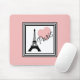 Paris illustration with Eiffel Tower and heart decoration in black and white squares on pink background