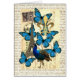 Pretty chic elegant romantic feminine digital collage of a peacock bird and blue butterflies and eiffel tower , Paris, France on a vintage paper postcard background and French stamp with gold fleur de lys. copyright Oconnart