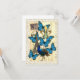 Pretty chic elegant romantic feminine digital collage of a peacock bird and blue butterflies and eiffel tower , Paris, France on a vintage paper postcard background and French stamp with gold fleur de lys. copyright Oconnart
