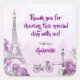 Say merci to your guests with a purple watercolor sticker perfect for a Paris themed event. The Eiffel Tower is surrounded by lovely purple irises with a Parisian skyline silhouette in the background. Customise the sticker for a Parisian themed wedding, bridal shower, engagement party, anniversary celebration, or birthday party. Use on favours to say thank you or as envelope seals. Available with matching products.