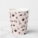 Chic Paris inspired paper cups feature a pattern of tiny birds, croissants, macarons, roses, coffee cups, and of course, the Eiffel tower, in black and white on a pale blush background, for a sweet and whimsical take on the timeless city. Personalise with the guest of honour's name, event type and date. Perfect for Paris themed bridal showers!