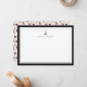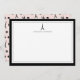 Our chic Parisian inspired personalised stationery flat cards feature a classic black border, a tiny black Eiffel tower illustration, and your name, monogram or choice of personalisation. Cards reverse to our Paris Romance pattern, with tiny birds, croissants, macarons, roses, coffee cups, and the Eiffel tower on a pale blush pink background.