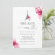 Surprise your loved ones with this cute invitation, featuring bright pink floral, eiffel tower and editable details. Easily customise it by clicking on the "personalise" option.