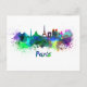 Paris skyline in watercolor postcard