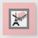 Paris illustration with Eiffel Tower and heart decoration in black and white squares on pink background