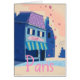 Paris Street vintage cartoon scene with love hearts floating up into the sky.