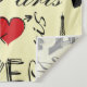 Paris text design for Valentine's Day with red heart shapes, Eiffel Tower and street lamps decoration on yellow background