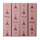Paris illustration with Eiffel Tower and heart decoration and Paris text design on black, white and pink striped background