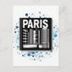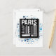 A small collection of travel books on Paris, France in black and white. Shades of blue watercolor dots accent the background.