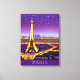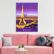 Canvas in an impressionist illustration of Paris against a starry purple sky, featuring the Eiffel Tower illuminated in gpld