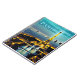 Notebook in an Impressionist illustration of Paris under a deep turquoise blue twilight sky, featuring the Eiffel Tower illuminated in golden yellow