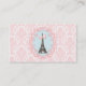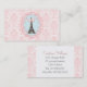 This design is inspired by Paris, city of fashion and light! It features the famous eiffel tower in vintage illustration style, where a light pink ribbon graciously lays on the top to add a girly touch. The background is made of light blue and white polka dots and pink and white damask. Finally, it is framed by a vintage style frame in pink swirls. Change the model text by entering your name and address information.