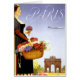 Restored and digitally enhanced vintage travel poster showing a woman flower vendor holding a basket of flowers; in background is the Arc de Triomphe and in the sky, a Constellation aeroplane. Imperfections removed. Colours corrected. Image courtesy of Library of Congress.