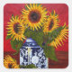 Paris' Yellow Sunflower on Red Background Square Sticker