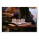 Café parisien, rue Rambuteau near Beaubourg - 2008 - People in motion on the other side of the glass but this human form seems to get up to leave. 3 cups of Coffee on the table. Greeting card.
