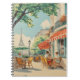 A charming vintage-style illustration of a sunny Paris café terrace with rattan chairs, red-striped awnings, and views of the Eiffel Tower. The 1950s retro aesthetic and warm ambiance make it a perfect piece for nostalgic or travel-themed decor.