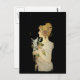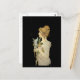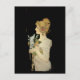 An 1899 design with beautiful woman in Grecian gown holding a feather. Profile piece on a distressed black background.