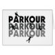 Modern Parkour free running design in black, dark grey, and light grey with silhouetted people running, jumping, hanging, and flipping.