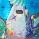 A modern artist's impression of the popular extreme sport of parkour being practiced in an colourful urban back street.