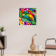 Parrot 3 Birds Tropical Floral palms blue purple Poster