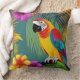 Parrot Bird Tropical Floral palms blue purple red Cushion