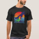I give wanted to give this a 4 instead of a 5 because these Basic DARK T0shirts run unexpectedly SLIM or Narrow. Which is great if you do not have a potbelly, but I have a paunch. It isn't the shirt's fault that I've got a beer belly. The design and shirt itself is a quality cotton shirt. The color is more of a deep purple, but still a very pretty color. The Basic DARK T-shirts run a bit SLIMMER than the Basic Ts. The neck is a fraction narrower (or seems to be narrower) also. I'm a paunchy middle-aged woman and my neck is 12 inches (31cm) thick and the neckline fell about the same as in the photo of the man, and I had the desire to tug it a bit. So if you're a thick necked man or like loose shirts, be aware these are slimmer shirts. Once I get rid of my lockdown paunch it'll look great. The shirt washed well in cold water with no apparent bleeding. We don't have a dryer, so it hung dry. Did not shrink. Love the colors and the design. The design looks smaller on my shirt than it does on the model on-line. But still, it looks good on the shirt. The printing looks as it does on the model, just the size seems fractionally smaller. Washed garment in cold water, hung dry and design appeared unaffected.