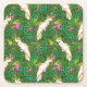 Parrot Pattern With Palm Leaves Square Paper Coaster