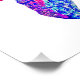 Vivid, graphic drawing, of a Tropical parrot, perched on a branch-and displayed in, an exotic, island pattern, in fuschia, red, turquoise, blue, yellow, white, and black.