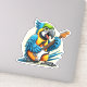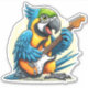 A colourful parrot, which loves and plays rock music, with great creative energy.