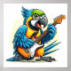 A colourful parrot, which loves and plays rock music, with great creative energy.