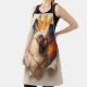 This parrot apron exudes a relaxed boho vibe. The white bird with orange crest, round sunglasses, and tree of life necklace combines style, humor, and positivity. The colorful background makes the apron lively and unique.