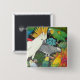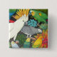 A painting of colourful parrots such as a cockatoo, Amazon, budgies, and more by Carolyn McFann printed on a great pin for bird lovers.