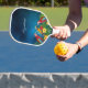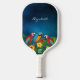Parrots birds red blue yellow pattern name script pickleball paddle