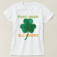 Here's a cute St. Patrick's Day shirt that declares you are "Part Irish, All Lucky". At the centre of the text is a dark blue green shamrock with orange gold dots and border. The green and orange text above and below the image has little shamrocks decorating it.