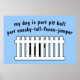 Some of the best dogs have a little fence-jumper (or digger-underer) in the family tree! Here's a design for the mixed breed dog owner with a sense of humour about their mutt's shady past! The design shows a dog silhouette behind a fence, with the words 'my dog is part pit bull part sneaky-tall-fence-jumper'. Find your favourite Pit Bull mix designs today on a variety of gift and apparel products here at MuttyBuddy!