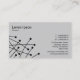 A stylish modern business card template with an abstract motif made up of vector lines each ending in a solid circular spot, inspired by scientific illustrations of such things as particle track although could represent many things or simply act as an attractive decoration. Company name and business type on the front in the lower right. Name and other contact details on the reverse side with the same motif as used on the front except flipped and placed in the lower left-hand corner creating an attractive varied yet consistent design in both sides.