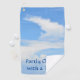 Blue sky and a swirl of white cloud is a refreshing and airy golf towel that can be personalised with a Name or your own text. A partly cloudy sky creating a beautiful cloudscape with a Twist because any weather is ideal for golfing. The sky's the limit with these bright crisp blue and white golf towels. These towels are also great for outdoor grill and bbq or the home bar or barcart.
