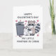 Funny Galentine's Day folded card to surprise your best friend for Valentine's Day. Cute design with a raccoon and a rat illustration, and the message "Happy Galentine's Day, my little partner in crime". All text is editable, and inside there's space to add a message or leave it blank to handwrite it.