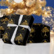 Partridge in a Pear Tree Gold on a black background. Festive holiday song the 12 days of Christmas the first day my true love gave to me! Golden Orange hued pears with a partridge on top. Wrap up the first present!
