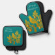 Partridge In A Pear Tree Teal Gold Merry Christmas Oven Mitt & Pot Holder Set