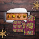 This festive Christmas oven mitt and potholders set showcases a charming design of partridges perched in pear trees, with pears in both green and red hues, set against a deep burgundy background. Gold snowflakes gently cascade across the scene, adding a touch of holiday sparkle. Ideal for bringing both style and cheer to your kitchen during the holiday season, this set makes a lovely companion for baking, cooking, or enjoying seasonal gatherings. Its vibrant design ensures you’ll feel festive and cosy while preparing your favourite holiday treats.