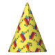 Party hat features an original marker illustration of a colourful rainbow donkey pinata. Great for a birthday party, Cinco de Mayo, or any fiesta-themed event!
