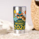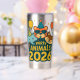 A group of fun cartoon animals in party hats and balloons celebrates 2026 with playful energy.